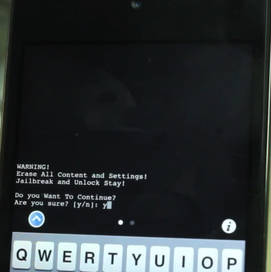 6、 接著鍵入“y” (不包括雙引號),表示確認,再按設備虛擬鍵盤上的“return”。 之後,你的設備就開始恢復了,可能會需要幾分鐘的時間,耐心等待即可。