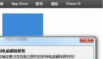 5、在彈出的對話框中,選擇“授權所有電腦”。這裡的表達可能有點不夠完善,反正意思就是“解除所有授權”。點擊之後等待iTunes運行即可完成。