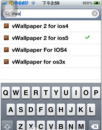 2.打開:Cydia--搜索"vWallpaper2 "對應本機的IOS版本--安裝。