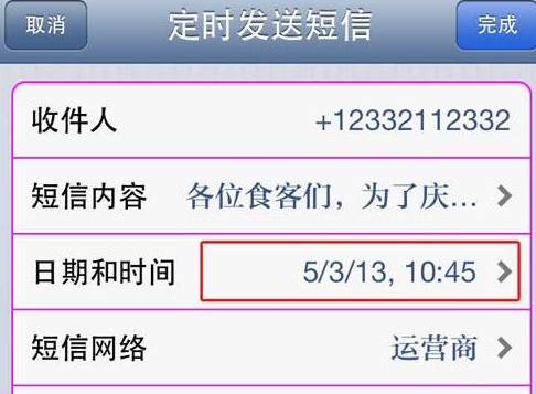 3、設定發送時間後點擊“完成”
