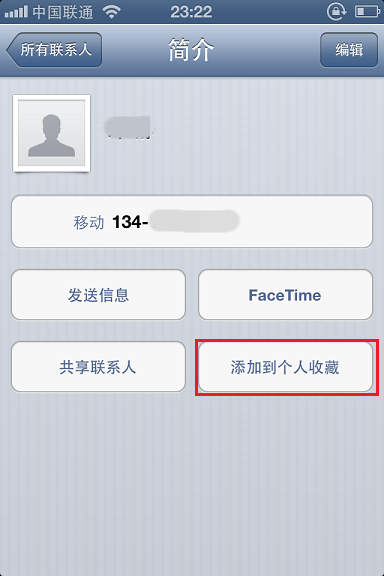 選擇聯系人名片,輕按添加到個人收藏,聯系人便會出現在撥號界面的“個人收藏”欄中,方便用戶快速尋找撥號聯系人號碼。