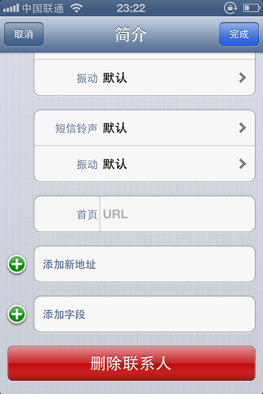 找到需要刪除的聯系人名片,點擊右上角“編輯”,拖動屏幕至最下方,輕按紅色顯示框內的“刪除聯系人”按鈕,然後確認“完成”。