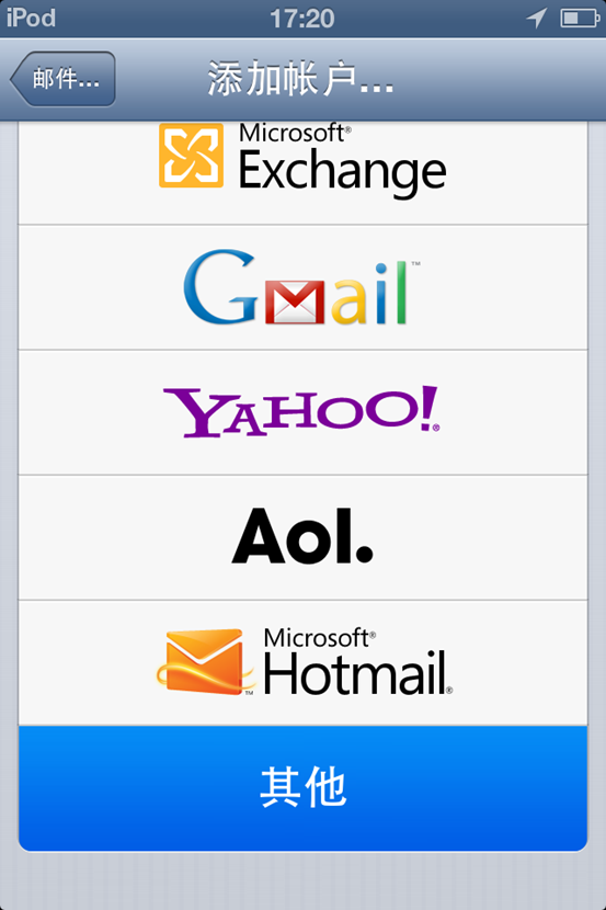 由於國內大多數朋友們的郵箱不屬於列表裡的郵箱,拉到最下面,選擇“其他”。