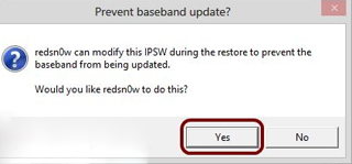 5、這時會彈出對話框 Preserve baseband uodate?(是否保留基帶) ,選擇 YES