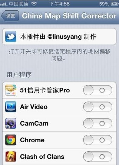 iOS6版本中查找我的iPhone定位偏移的進來,已有解決方法了,在Cydia中查找一個叫Find My iPhone China Corrector的插件安裝,之後在手機設置中有個China Map Shift Corrector的選項,在裡面設置你需要修正的程序就OK了。