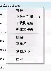 2.(關鍵步驟)用91選擇文件管理,然後右鍵單擊applications修改權限為0777 並且選擇覆蓋至下級目錄(這一步尤為重要,不加載下級,你下級裡面的MOBILEPHONE等還是沒有權限打開,還會導致閃退。)。