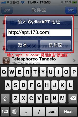 5.輸入第一中文源地址→http://apt.178.com