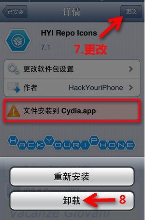 不過大家要注意如下圖中紅框處【文件安裝到Cydia.app】這類警告標示的依賴包,建議不要卸載刪除,避免出現意外錯誤問題。