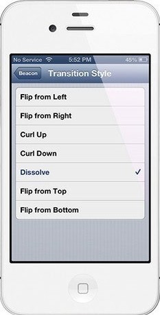 不過 Beacon 也有另外的一個小功能,即從啟動界面進入鎖屏界面時可以添加一個自定義的動畫效果,如淡入淡出等。在安裝完 Beacon 後,你可以在【設置】-【Beacon】-【Transition Style】中進行設置: