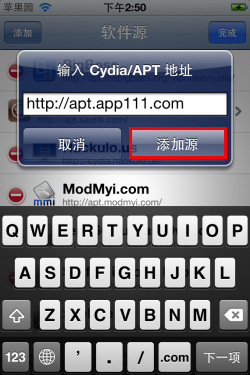 本教程以添加蘋果園軟件源為例,演示具體添加源及在cydia裡面安裝軟件的方法:
