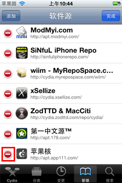 當用戶不在需要某一個軟件源時,可以通過Cydia來刪除相應的軟件源,刪除之後,從該軟件源安裝的軟件都會繼續存在,不過不會再提示更新。
