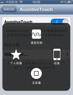 iPhone:iPhone由於不支持多任務手勢,但可以在設置中打開AssistiveTouch: