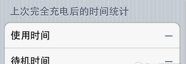 如果在使用時間和待機時間均顯示一個破折號,則說明沒有統計到足夠的數據,有可能是上次充電沒有充到100%或者中間有數據丟失。