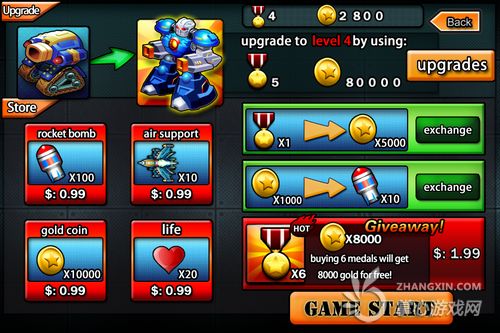 游戲在武器上的沒有過多的變化,雖然己方的坦克是可以升級的,但是升級的價錢可以說是非常昂貴啊,因為游戲中金幣的獲取量實在是太低了,一個關卡最好的時候能獲得10多金幣,以這樣的速度何時能夠升級。
