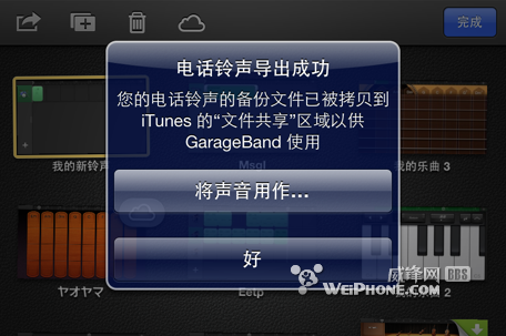 自從更新iOS6之後,原先只有通過越獄才能達成的短信鈴聲自定義功能已經奇跡般地出現在官方固件中了!而Garageband1.3發布後,除了提供了對寬屏iPhone5的支持外,也增加了導出當前鈴聲作為設備鈴聲的功能。這就讓我們可以利用移動版GarageBand裡豐富的軟件樂器、鼓組、采樣器甚至錄音器來創造各種簡短的、優美的、驚栗的或是.....內涵的來電或短信鈴聲。(iPad在升級iOS6後,也可以通過GarageBand來導出用以提醒iMessage的音效)