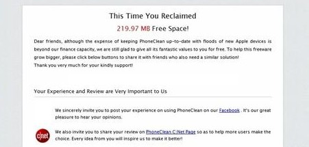下載iMobile公司推出的Phoneclean軟件,它可以幫助我們清除iOS設備上的無用文件,釋放可用空間。