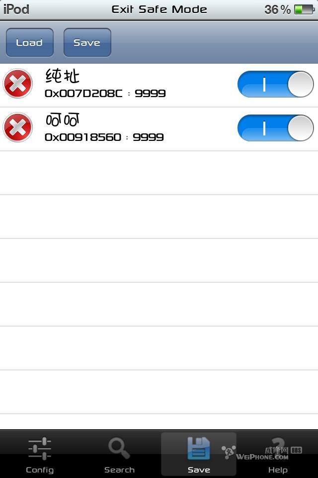 5、返回iGame,Guardian,搜索現在的數值,現在估計就還有一兩個地址了。6.點開那兩個地址,給他們起個名字。再點save,那倆地址就豁然眼前了
