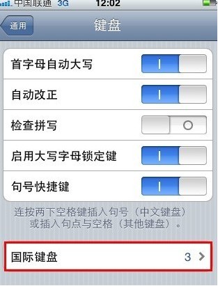 重啟完成,這時輸入法已經安裝成功,但是還需要添加到切換輸入法列表才可以使用,找到“設置-通用-鍵盤-國際鍵盤”