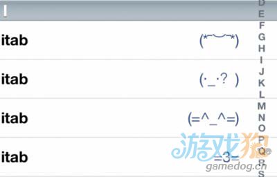 方法很簡單,把喜歡的表情符號拷貝下來,到【設置】->【通用】->【鍵盤】中的【用戶詞典】->添加新的短語,把拷貝下來的表情符號粘貼在短語那一欄中,填輸入碼(如圖中的itab),等到想用的時候就可以很方便地調出來了.