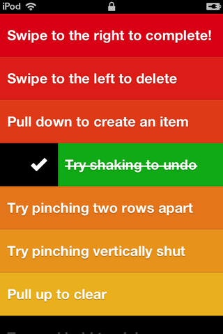 作為一款備忘錄應用,《Clear》不僅有優秀的UI設計,而且還有比一般ToDo應用多得多的手勢操作方式。《Clear》通過單指和雙指的不同手勢實現任務條拖曳、添加刪除線、添加新任務、上下級界面等等,幾乎所有的操作都可以用手勢來完成,讓用戶無需一個一個的點擊,減少了點擊數,也讓用戶做事更有效率。