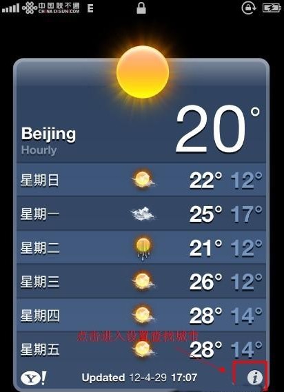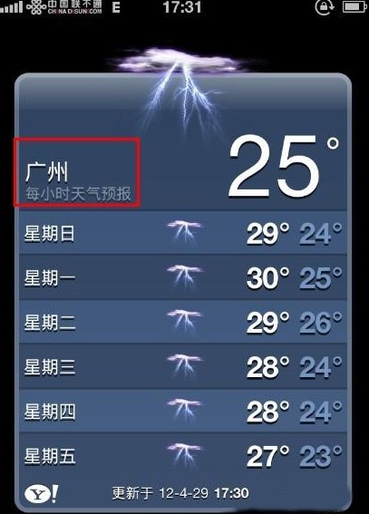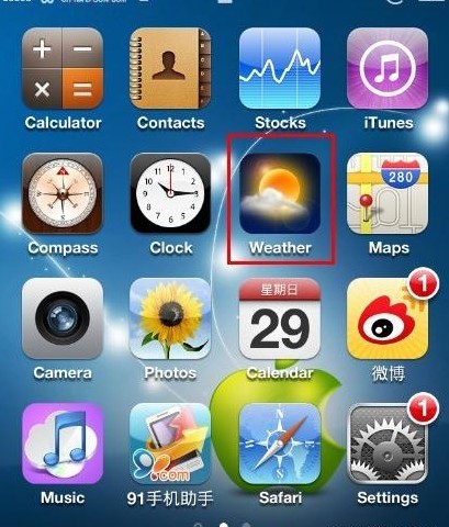 iPhone4裡面只收錄了北京、上海等這些大城市天氣情況,然而iphone4沒有自己城市的天氣顯示怎麼辦,iPhone4設置城市天氣教程告訴您怎麼輕松設置自己的城市在iPhone4的顯示頁面上。