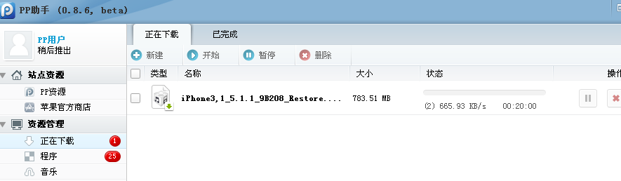 刷機、降級、恢復等等,但是iTunes上只有最新固件,其他固件就需要去官方或各大論壇網站去下載,很麻煩。簡單的捷徑用PP助手,在工具箱固件下載可以下載到你需要的固件。
