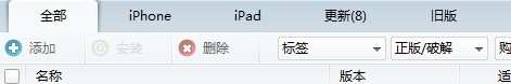 在資源管理→程序 裡面可以清楚的看到本地已有的應用或游戲。上端的標簽頁有劃分好iPhone、iPad 版本。並且會提示新版本應用的數量,您可以根據自身需要選擇進行更新。