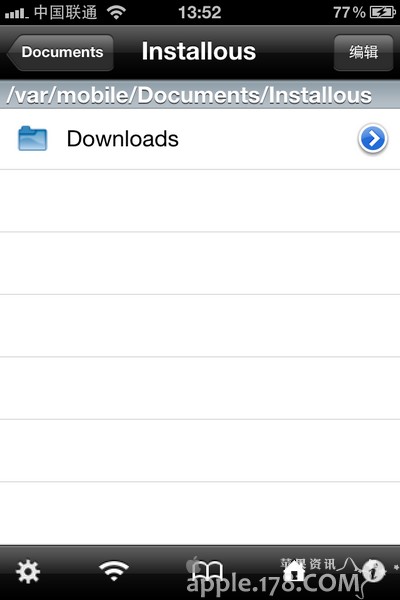 待安裝完成後運行iFile,進入到/var/mobile/Documents/Installous 看到download文件夾進行編輯