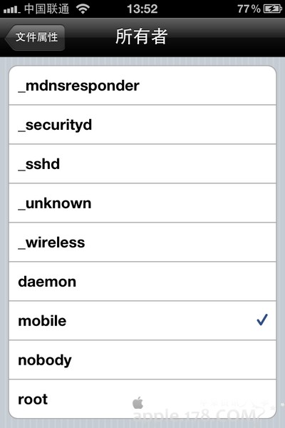看到所有者是屬於root,這時候我們需要把root改為mobile。