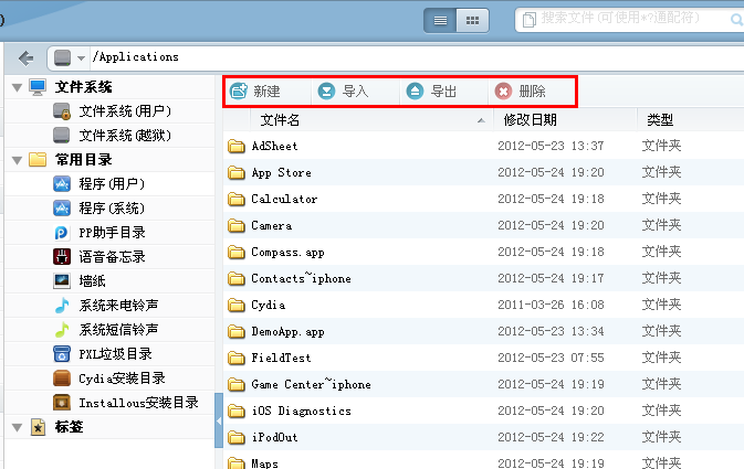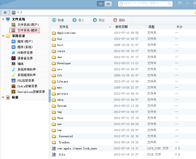 文件系統(越獄)對於現在5.11完美越獄後,越獄用戶的急劇增加。如,美化、優化等很多地方用到,PP助手給你提供了這個操作的平台。