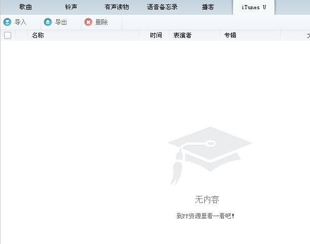 有聲讀物、有聲讀物、語音備忘錄、博客、iTunes U如果你手機沒有此類文件你可以選擇在PP資源裡面尋找。