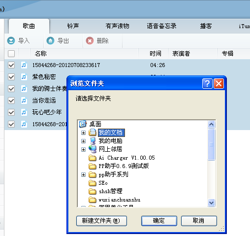 導出將你選定的歌曲導出,也就是備份了你的歌曲。