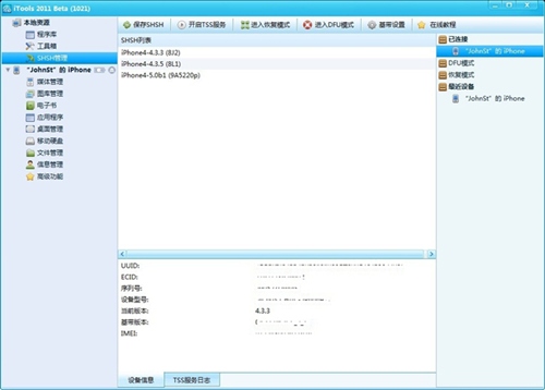 3.SHSH管理。可以進行SHSH的備份,SHSH服務器的架設等。