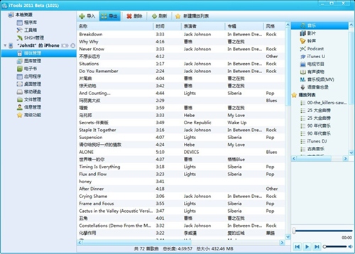 5.媒體管理,可以對音樂進行導入,反向導出,刪除等操作。較iTunes相比這項功能更適合國人習慣。