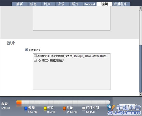 而2.0以上固件,基於音樂傳輸的同一個原因,因此暫時還無法通過91手機助手來進行電影(視頻)的傳輸,需要借助iTunes來進行電影(視頻)文件的同步。