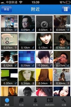 注冊、登陸之後,就出現一堆帥哥美女的照片,讓人眼前一亮,而上面的距離數據,則是顯示這些人與你的距離遠近,由近到遠依次排開,而且邊上還有性別提示,怎麼樣,有種沖動吧。趕快注冊一個吧,在其中尋找志同道合的人,大膽的去結交你身邊的陌生人吧。