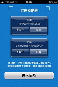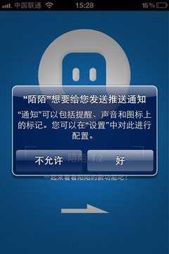 第一次打開陌陌的時候,會提示是否推送,如果想要推送的話,就點“好”就可以了,不想要推送就點擊“不允許”即可。之後,軟件會提示你浏覽新版陌陌的一些新功能。而之後會讓你來啟用“定位服務”,然後注冊之後,就可以正常使用了。