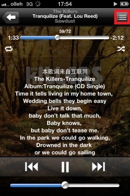 3.點擊右上角的按鈕,可以浏覽播放歌曲專輯的全部曲目。
