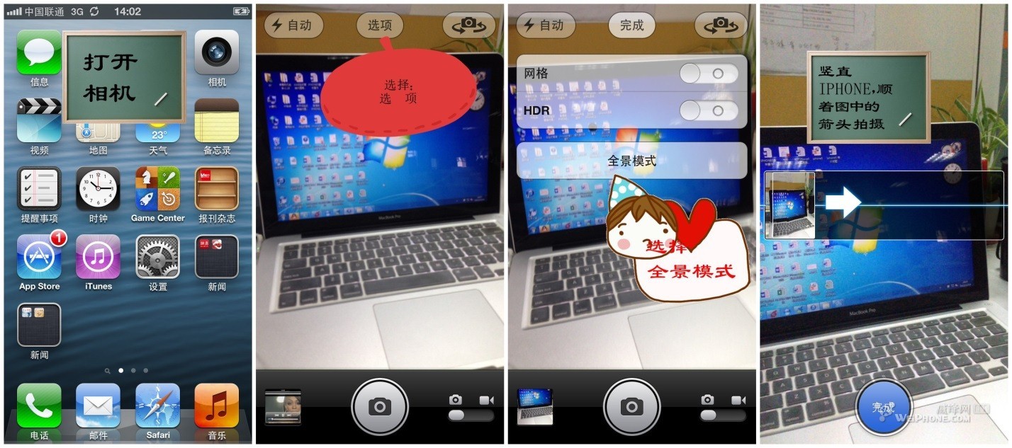 三、強大的全景拍攝(支持240度,IP5 4英寸屏觀看效果更好,別說我MAC裝WIN系統,實在沒有辦法,很多測試應用軟件必須要WIN才可以解決)
