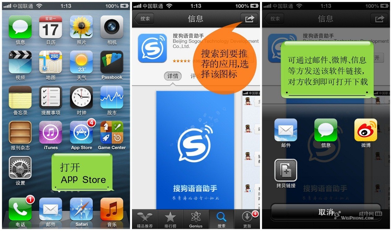 十三、應用軟件直接分享推薦給好友(有些時候下載了一些好玩的應用軟件,想告訴朋友現在變得很簡單)