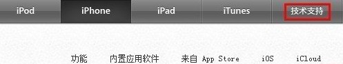 下面再來說一下激活時間的問題,因為全新iPhone 4S在購買後需要激活才能使用,激活的那一刻就是保修期開始的時間,而且它需要在聯網的情況下才能進行,激活後蘋果官方就會收到信息。如果想辨別你買的 iPhone 4S是否為全新機,這個方法最可靠,下面我們就來說一下查詢步驟,首先登陸蘋果官網,然後點擊最上方的技術支持。