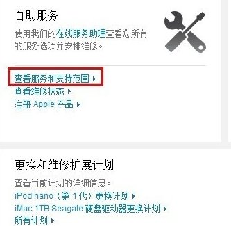 進入技術支持頁面後,拉到最下方,點擊“查看服務和支持范圍”。