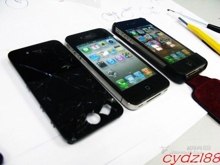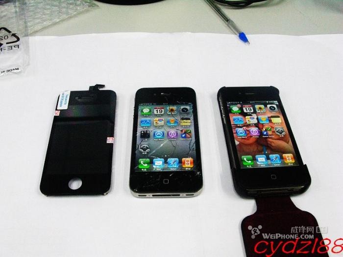 iphone4 碎屏後自己更換屏幕全記錄,多圖殺貓,前幾天從電腦桌上掉下。“臉”向下,拿起來一看,成了大花臉啊。前天500大洋買了一個所謂的原裝屏(店家說是原裝的,)