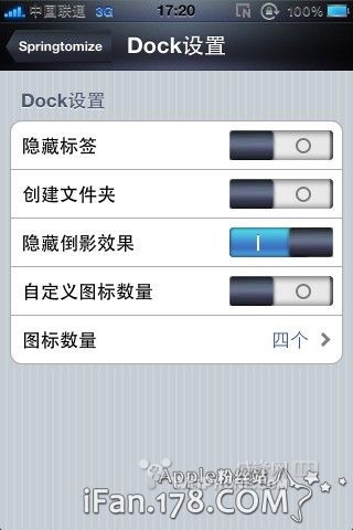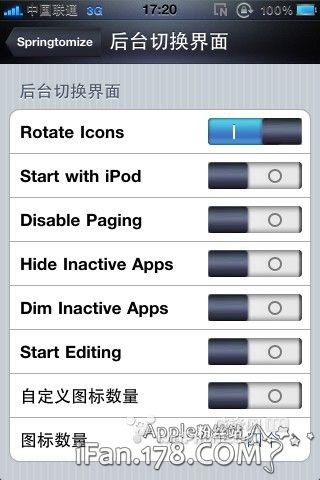 Ios教程網 >> IOS教程 >> 蘋果手機教程 >> 蘋果springtomize重新自定義的系統設置及功能增強