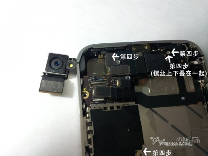 第三步,拆頂端貌似天線板、攝像頭;拆中殼連接線。四個十字镙絲。輕松拿掉。並輕輕橇起各個連接頭,並取下攝像頭。擰下中間一字扣板兩邊镙絲,橇起連接頭,OVER。我的一字扣板,一個镙絲擰不動,干脆轉一下,就好了。