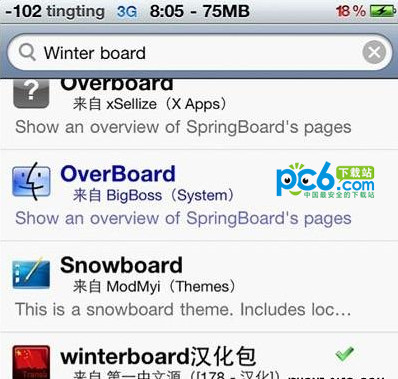 第五步:我們安裝完成後,回到手機主屏幕,打開設置,就會看到WinterBoard選項了,就說明你的已經安裝好了。