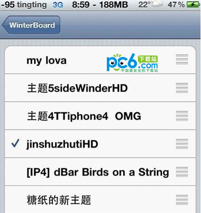 Winterboard是一款iPhone4S主題美化軟件,支持主題、壁紙、透明DOCK、動態桌面的個性化設置。