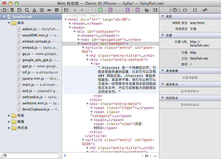 4. 最後就是調用桌面版的 Safari 的 Web 檢查器對 iPhone/iPad 上的 Safari 應用進行調試: