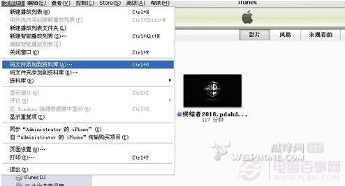 第二步:點擊影片(音樂)圖標,然後點擊文件菜單,選擇將文件添加到資料庫。