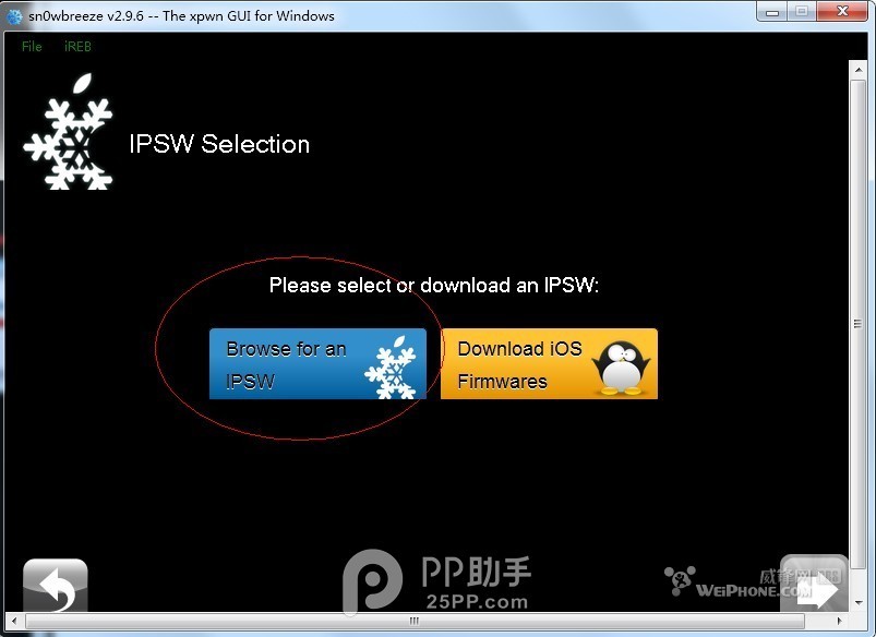 第一步:先自制固件:打開sn0wbreeze-v2.9.6